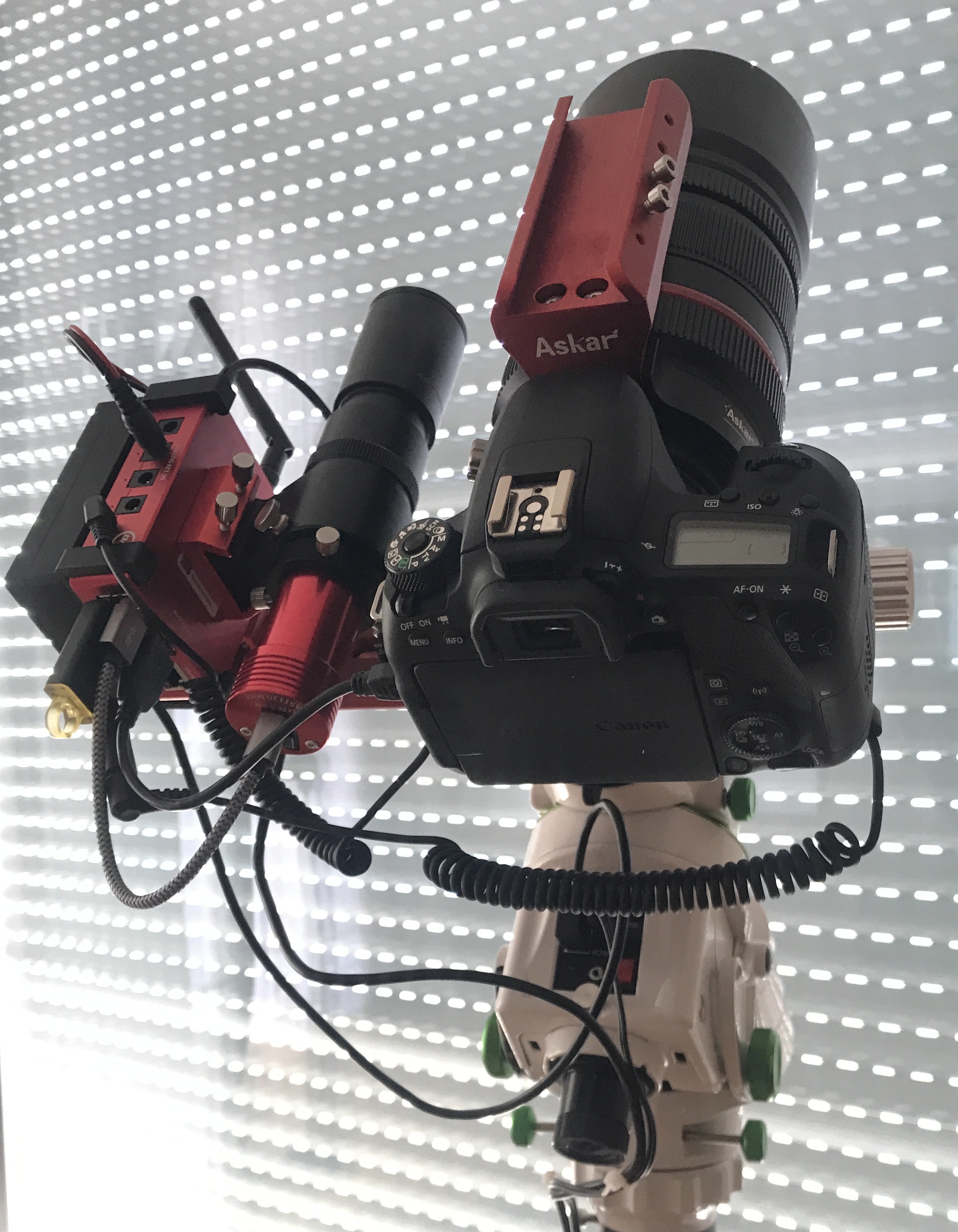 Adapter der DSLR Kamera montiert wird. Eine Alternative wäre natürlich eine ASI Kamera mit integriertem USB Hub.