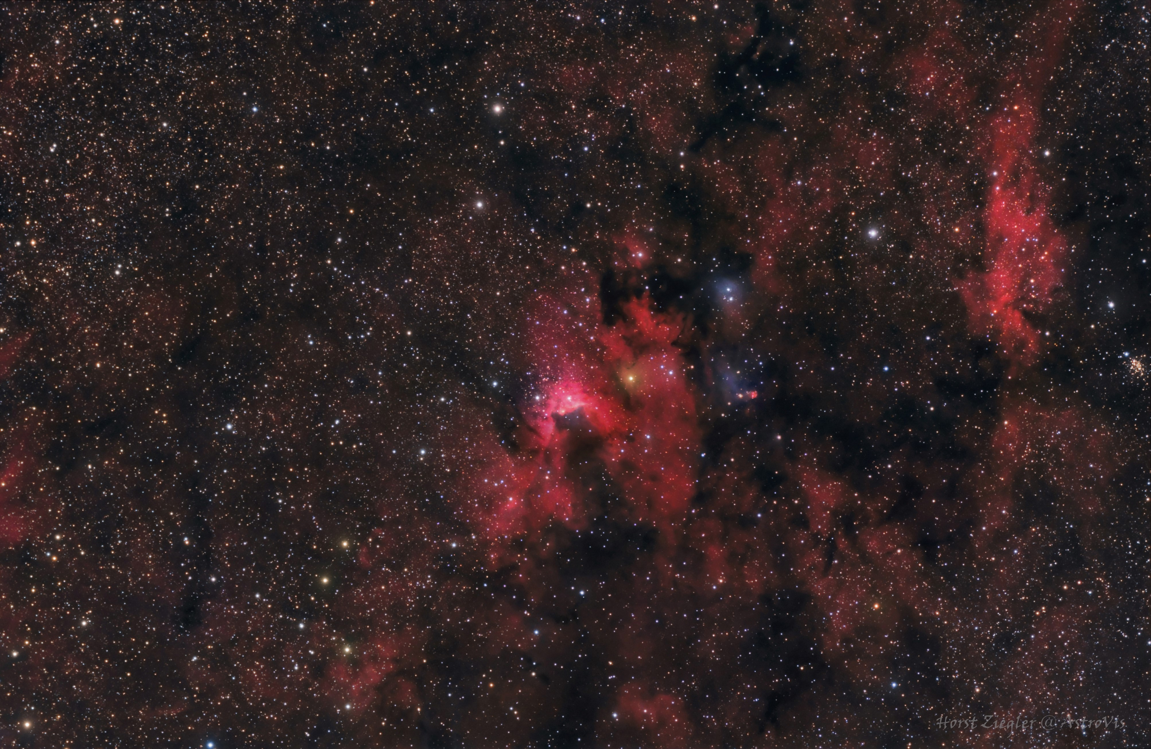 im Sternbild Kepheus, umgeben von einigen Reflexions- und Dunkelnebeln, sowie weiteren Emissionsnebeln. |